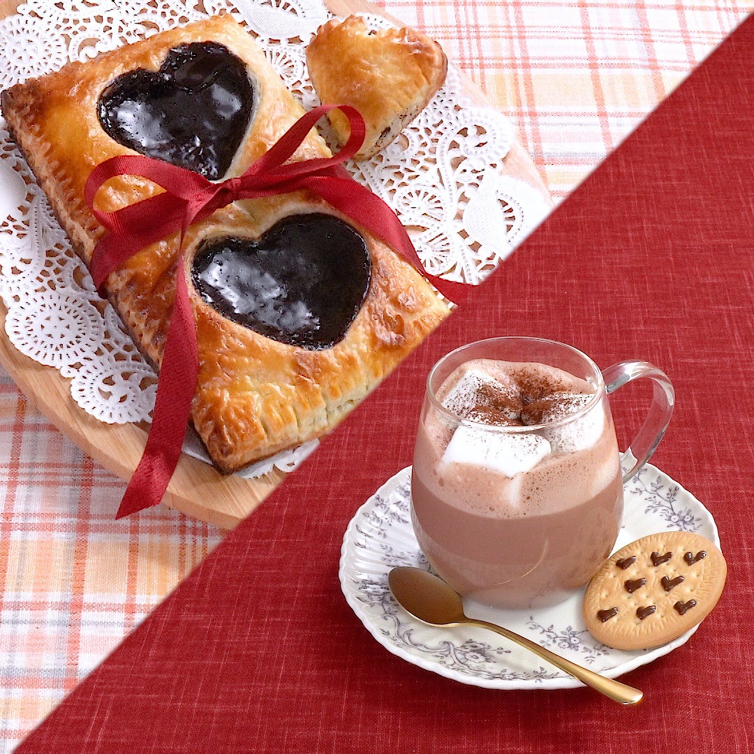 森永製菓株式会社の商品を使えば、生地を耐熱容器に入れてレンジで加熱するだけでできてしまう「白いフォンダンチーズショコラ」や森永純ココアを使用した「ハートの純ココアパイ」など美味しくてかわいいスイーツを簡単につくることができます。